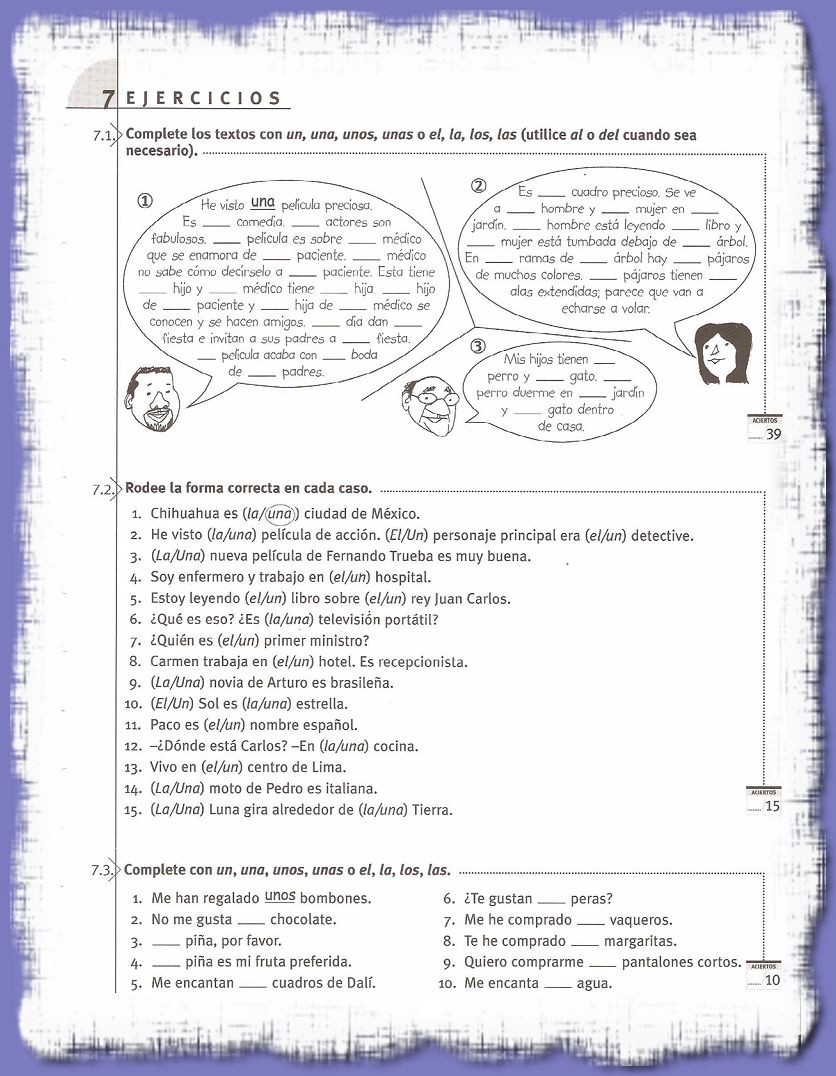 Lección 7: Contraste entre articulos Determinados e Indeterminados