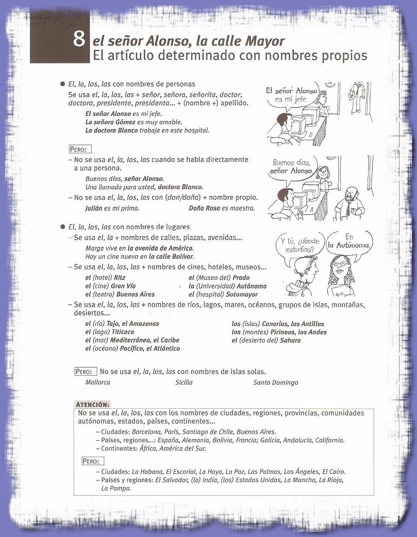 Lección 8: Articulos Determinados con nombres propios
